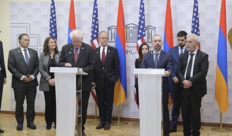 Նշենք, որ պատվիրակության անդամներն այսօր հանդիպումներ են ունեցել ՀՀ վարչապետի, ԱԺ նախագահի հետ, կայացել է նաեւ հանդիպում ՀՀ ԱԺ արտաքին հարաբերությունների ու պաշտպանության եւ անվտանգության հարցերի հանձնաժողովների անդամների մասնակցությամբ: Քննարկվել է հարցերի լայն շրջանակ. անկյունաքարային կարեւորություն ունեցող հարցը վերաբերել է այս պահին Հայաստանի շուրջ տեղի ունեցող անվտանգային խնդիրներին եւ մարտահավերներին: Հանձնաժողովի նախագահ Էդուարդ Աղաջանյանը հայտնել է, որ նշված խնդիրների առնչությամբ ԱՄՆ գործընկերների հետ բավականին բովանդակային եւ կարեւոր խոսակցություն է ընթացել: