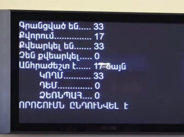 Կողմ քվեարկեց 33 պատգամավոր, դեմ ձայներ չկան:
