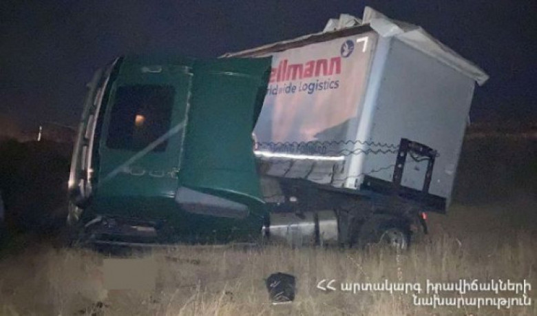 Պարզվել է, որ Սիսիան-Երևան ավտոճանապարհի 39-րդ կմ-ին «Volvo» մակնիշի բեռնատարը (վարորդ՝ Ֆ. Ս. Բ., ծնված 1973 թ., ԻԻՀ քաղաքացի) դուրս է եկել ճանապարհի երթևեկելի հատվածից, սահել դաշտամիջյան հատված (մոտ 15 մ) և կողաշրջվել։
