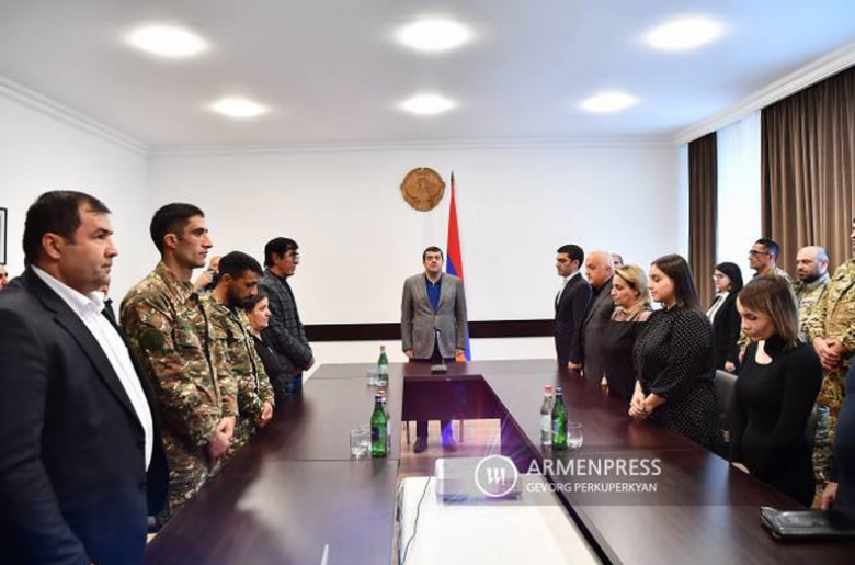 «Արմենպրես»-ի հաղորդմամբ՝ Երևանում Արցախի ներկայացուցչությունում «Ոսկե Արծիվ» շքանշանները հերոսների ծնողներին հանձնեց Արցախի նախագահ Արայիկ Հարությունյանը: