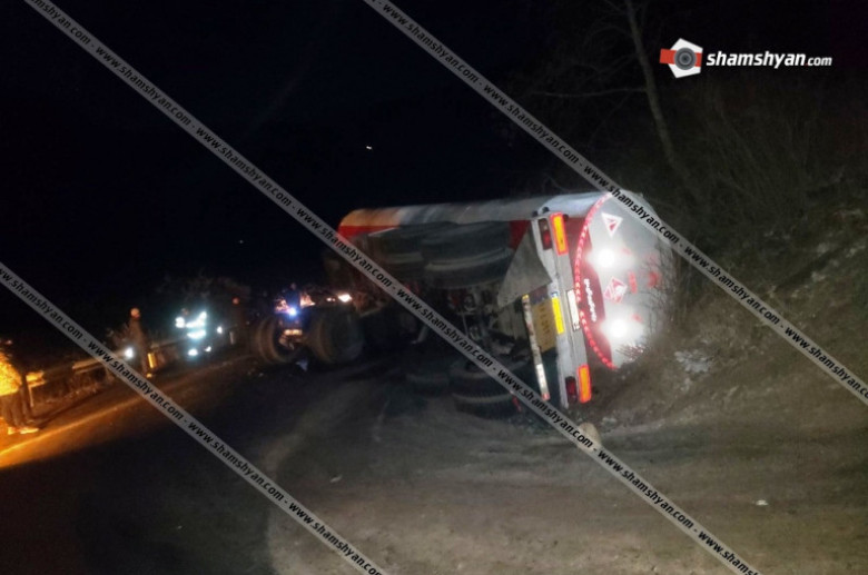 Գորիս-Տաթև ավտոճանապարհին իրանական համարանիշներով դիզվառելիք տեղափոխող բեռնատար է կողաշրջվել