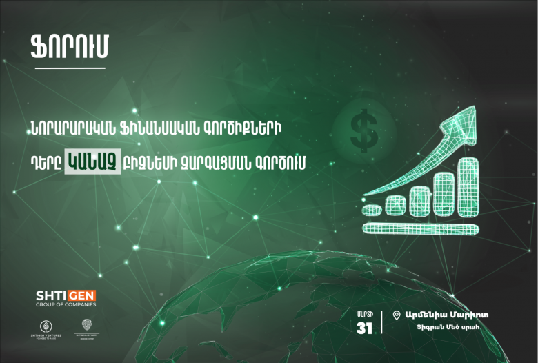 Shtigen ընկերությունների խումբը, Shtigen Advisory-ի աջակցությամբ և Shtigen Ventures-ի ներգրավմամբ, կազմակերպում է ֆորում՝ «Նորարարական ֆինանսական գործիքների դերը կանաչ բիզնեսի զարգացման գործում» խորագրով։ Միջոցառումը տեղի կունենա ս.թ. մարտի 31-ին` ժամը 15:30-18:30, «Արմենիա Մարիոտ» հյուրանոցի «Տիգրան Մեծ» սրահում: