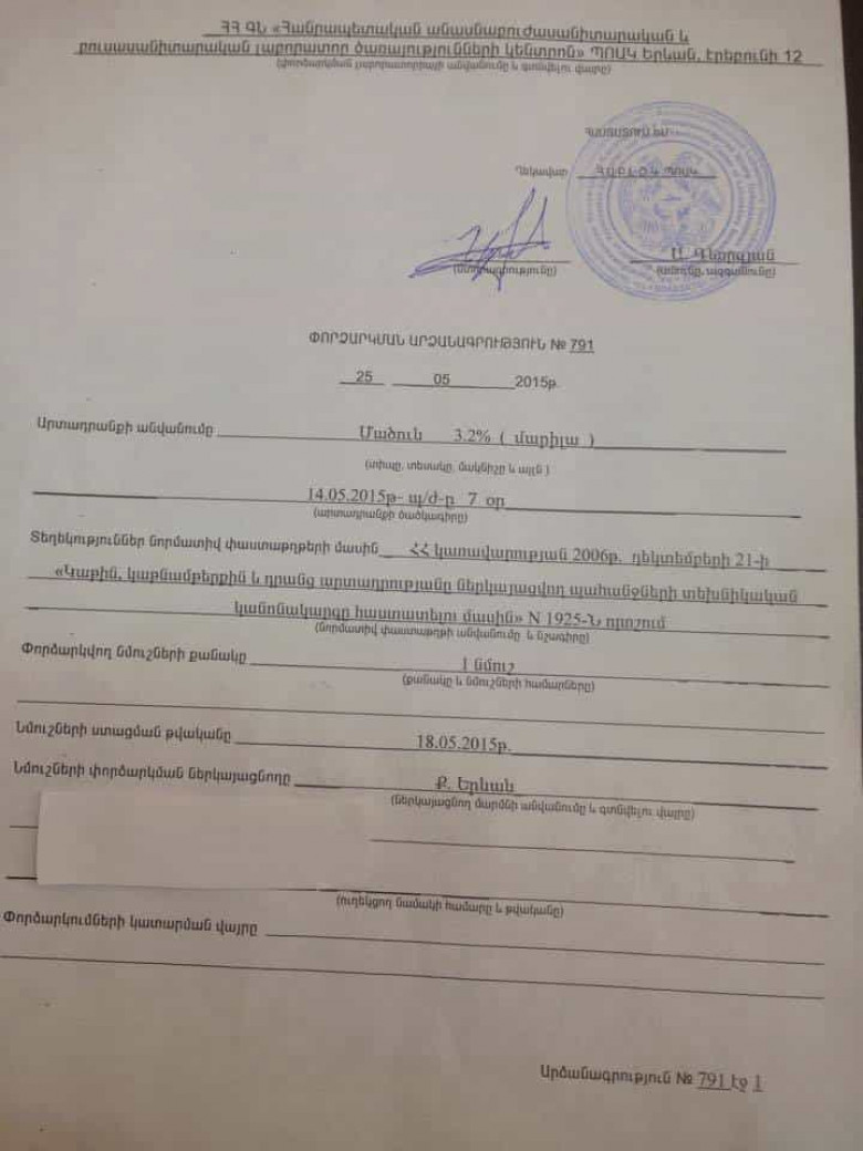 “Մարիլա” ընկերության կաթնամթերքում` մասնավորապես մածունում և պաստերացված կաթում հայտնաբերվել են խախտումներ: Մածունում` աղիքային ցուպիկ, իսկ կաթում աղիքային ցուպիկ և ՄԱՖԱՄ: Մոտ երկու շաբաթ առաջ բարեկամուհուս ընտանիքի անդամների մոտ նկատվել էր թույլ թունավորում: Մեծերի մոտ փորթուլություն, իսկ երեխան փսխել էր: Բժիշկ հարևանը, տեղեկանալով, թե ինչ մթերք են օգտագործել, կարծիք էր հայտնել, որ հավանաբար թունավորման պատճառը կաթնամթերքն է: