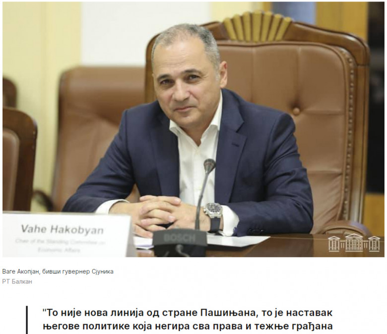 ՔԱՂԱՔԱԿԱՆ«Վերածնվող Հայաստան» կուսակցության նախագահ Վահե Հակոբյանը պատասխանել է սերբական RT-ի մի շարք հարցերի: Հարցուպատասխանը ներկայացնում ենք ստորև.