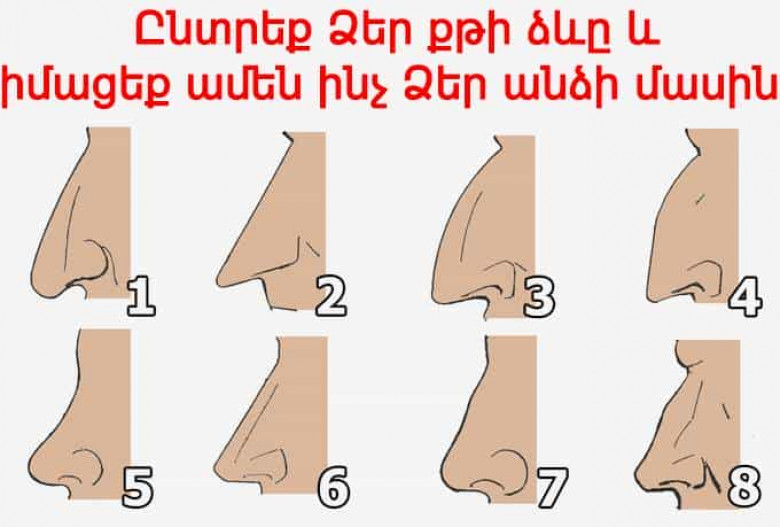 Ընտրեք Ձեր քթի ձևը և իմացեք ամեն ինչ Ձեր անձի մասին