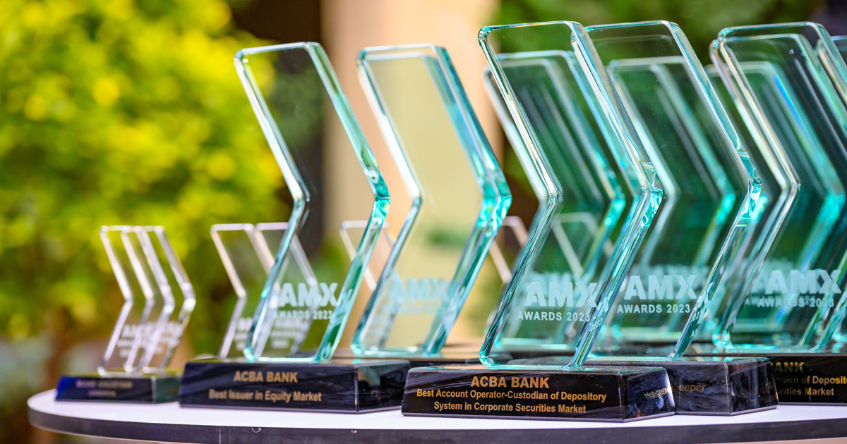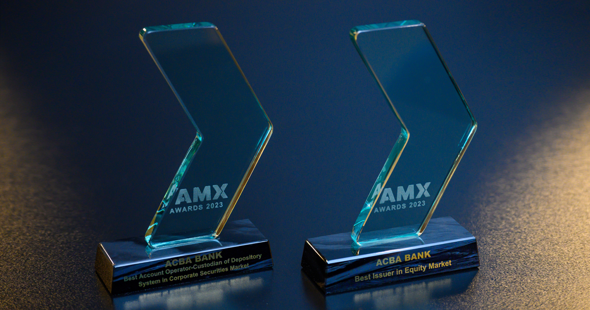 ՀԱՍԱՐԱԿՈՒԹՅՈՒՆԱկբա բանկը Հայաստանի ֆոնդային բորսայի և Կենտրոնական դեպոզիտարիայի կողմից իրականացվող AMX ամենամյա մրցանակաբաշխության շրջանակում ճանաչվել է «Լավագույն հաշվետու թողարկող կորպորատիվ արժեթղթերի շուկայում շրջանառվող բաժնետոմսերի մասով» անվանակարգի հաղթող։