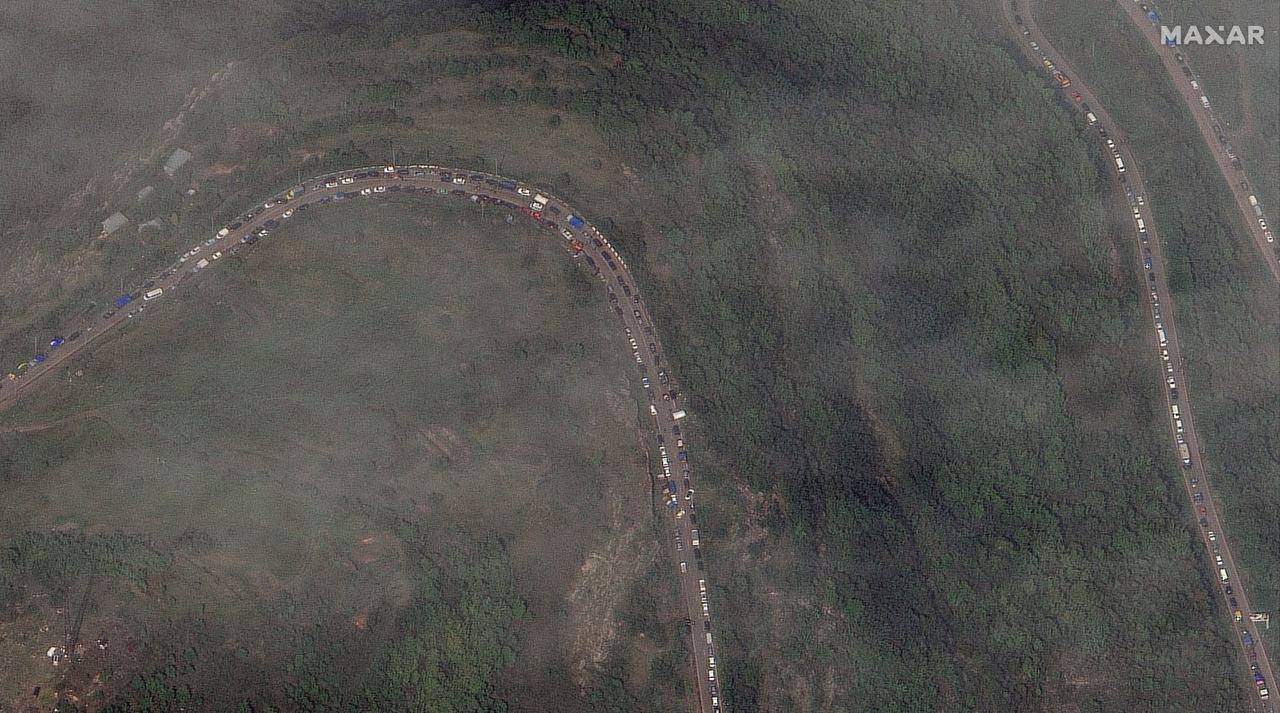 Ամերիկյան Maxar Technologies ընկերությունը հրապարակել է արբանյակային լուսանկարներ, որոնցում երևում է, որ Լեռնային Ղարաբաղում մեքենաների երկար հերթեր են գոյացել, քանի որ հայերը փախչում են տարածաշրջանից։