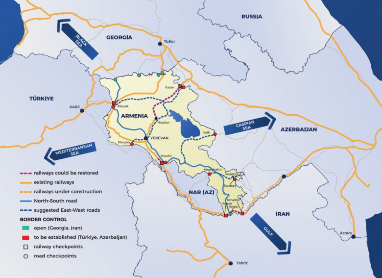 Հիմնականը. ո՞ւմ համար է լինելու այդ, այսպես կոչված, «խաչմերուկը»: Ո՞ւմ է ծառայելու: Ըստ մտահղացման, կամ ինչպես այն մատուցվում է Փաշինյանի գծագրած ու պրեզենտացիա արած քարտեզախառը պատկերում, Հայաստանը դառնալու է... խաչմերուկ, որը միմյանց է կապելու Արևելքն ու Արևմուտքը, Հյուսիսն ու Հարավը: Պարզապես հանճարեղ է: Հիմա մի փոքր հանգամանորեն դիտարկենք մանրամասնությունները: Արևելքում Ադրբեջանի հանցավոր իշխանությունն է՝ Հայաստանն ամբողջապես զավթելու պետական գաղափարախոսության մակարդակի հասցված ծրագրերով, Արևմուտքում՝ Ադրբեջանի հանցավոր իշխանության հիմնական տիկնիկավար Թուրքիան է՝ Հայաստանի պետականության վերացման, Հայաստանը տնտեսապես, ֆինանսապես, բոլոր առումներով կլանելու, ծայրահեղ կախվածության մեջ դնելու և/կամ աստիճանաբար վերացնելու ծրագրերով: