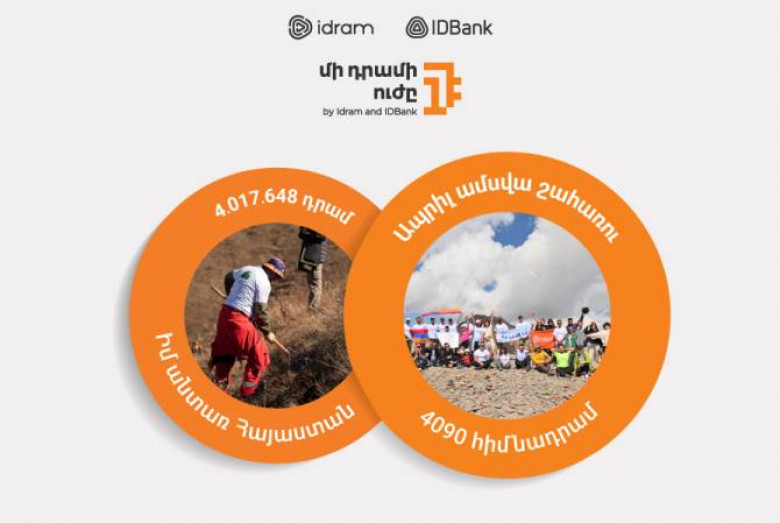 ՀԱՍԱՐԱԿՈՒԹՅՈՒՆIDBank-ն ու Idram-ն ամփոփում են «Մի դրամի ուժը» նախաձեռնության մարտ ամսվա ծրագիրը, որի շահառուն, ինչպես նախապես հայտարարվել էր, «Իմ անտառ Հայաստան» բնապահպանական հասարակական կազմակերպությունն է։ Կուտակված 4․017․648 դրամը հասարակական կազմակերպությունն ուղղելու է Հայաստանի անտառային ֆոնդի ավելացմանն ու կենսաբազմազանության պահպանման ծրագրերին։