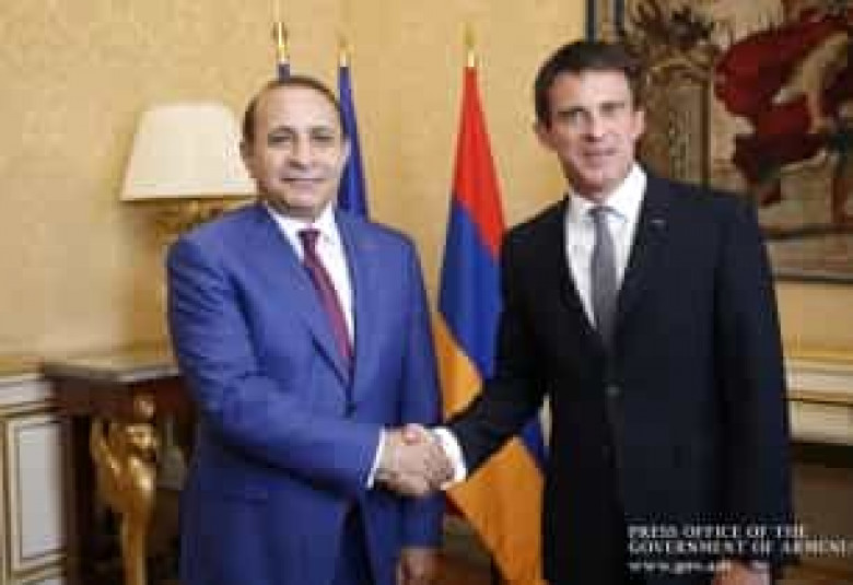 Ողջունելով հյուրերին՝ Ֆրանսիայի վարչապետ Մանյուել Վալսը բարձր է գնահատել Ֆրանսիա-Հայաստան փոխգործակցությունը՝ նշելով, որ երկու երկրների և ժողովուրդների բարեկամական հարաբերությունների արմատները գալիս են պատմության խորքից: Նա նույնպես կարևորել է տնտեսական հարաբերությունների զարգացման անհրաժեշտությունը և նշել, որ դրանք դեռևս չեն հասել քաղաքական հարաբերությունների մակարդակին: Նա անհրաժեշտ է համարել համագործակցության հետագա զարգացումը գիտության, կրթության, գյուղատնտեսության, զբոսաշրջության, միգրացիայի և մի շարք այլ ոլորտներում: Երկկողմ առևտրատնտեսական կապերի ընդլայնման տեսանկյունից երկուստեք կարևորվել է գործարար համաժողովների անցկացումը:
