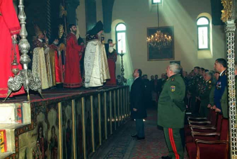 ՀԱՍԱՐԱԿՈՒԹՅՈՒՆՄայր Աթոռ Սուրբ Էջմիածնում` Մայր Տաճարում, Ն.Ս.Օ.Տ.Տ. Գարեգին Բ Ծայրագույն Պատրիարք և Ամենայն Հայոց Կաթողիկոսի հանդիսապետությամբ հունվարի 27-ին մատուցվել է Սուրբ Պատարագ` Հայոց բանակի օրվա կապակցությամբ: Արարողությանը ներկա էին ՀÕ € պաշտպանության նախարար Սեյրան Օհանյանը, ՀՀ ԶՈՒ ԳՇ պետ, գեներալ-գնդապետ Յուրի Խաչատուրովը, ՀՀ ԶՈՒ բարձրագույն սպայակազմը, Հայ Եկեղեցու թեմակալ առաջնորդներ, ՀՀ ԶՈՒ Հոգևոր առաջնորդության սպասավորներ ու զինվորներ:
