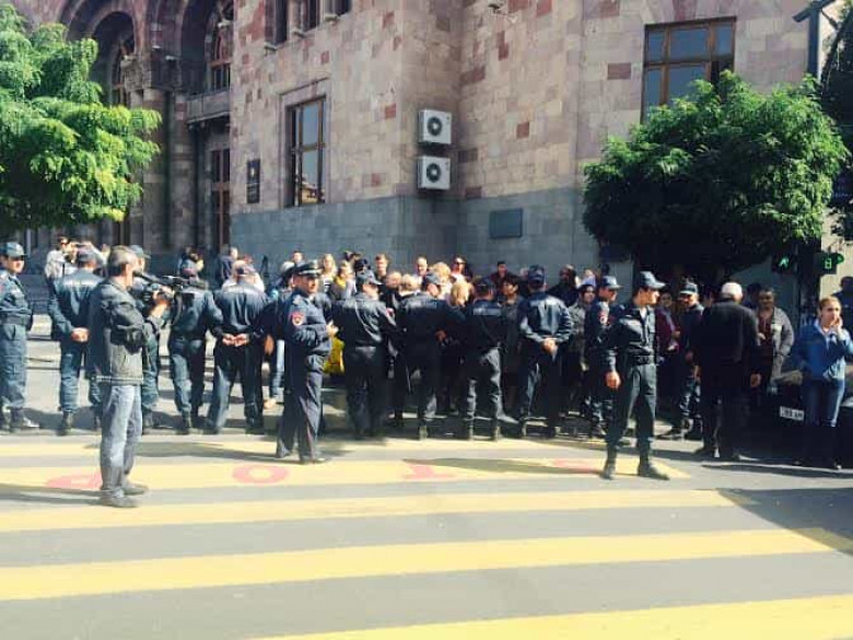 Նրանցից մի քանիսը նույնիսկ փորձեցին կառավարության շենք մտնել, սակայն անվտանգության աշխատակիցները դա թույլ չտվեցին: Հավաքվածները վանկարկում են. «Վարչապետ իջիր», «Պահանջում ենք մեր տները», «Զախարյան, քյոփակ շուն»:
