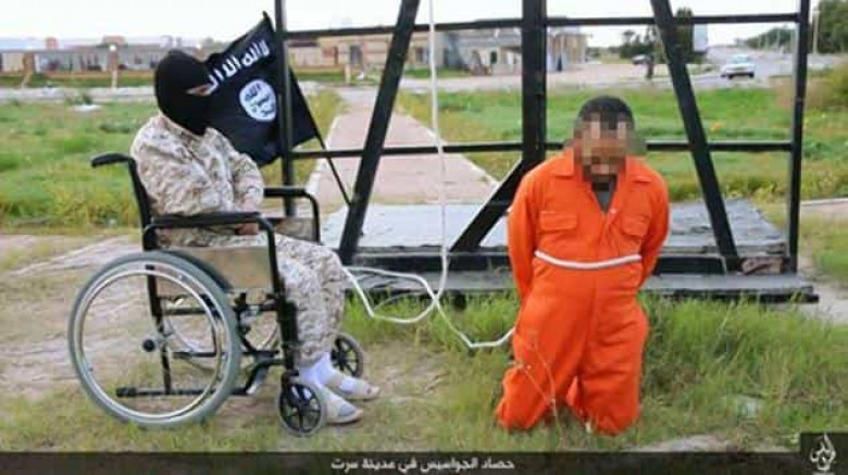 Ինչպես նշում է The New York Daily News-ը, անվասայլակին նստած ահաբեկիչը մահապատժի է ենթարկում ծնկի եկած լիբիացի «լրտեսին»։ Դրանից հետո իսլամիստները խաչել են ևս 2 լիբիացու։