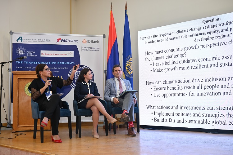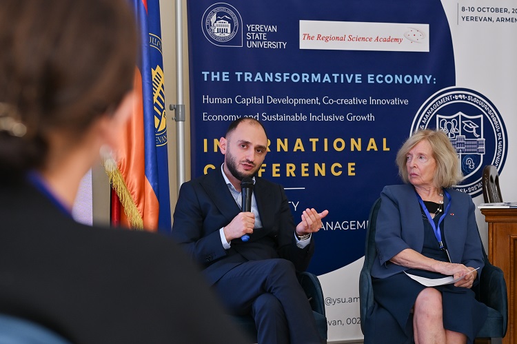 ՀԱՍԱՐԱԿՈՒԹՅՈՒՆՀոկտեմբերի 8-ին ԵՊՀ տնտեսագիտության և կառավարման ֆակուլտետում մեկնարկեց «Փոխակերպվող տնտեսություն. մարդկային կապիտալի զարգացում, ստեղծարար նորարարական տնտեսություն, կայուն ներառական աճ» խորագրով 2-րդ միջազգային գիտաժողովը: Գիտաժողովի կազմակերպիչներն են Երևանի պետական համալսարանի տնտեսագիտության և կառավարման ֆակուլտետն ու Տարածաշրջանային գիտության ակադեմիան։