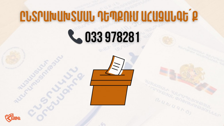 Եթե առերևույթ ընտրախախտում կնկատեք, մոտեցե´ք տեղամասում «ՀայաՔվեի» տարբերանշանով հերթապահող մեր դիտորդներին և ահազանգեք այդ մասին, կամ զանգահարեք մեր թեժ գծին`