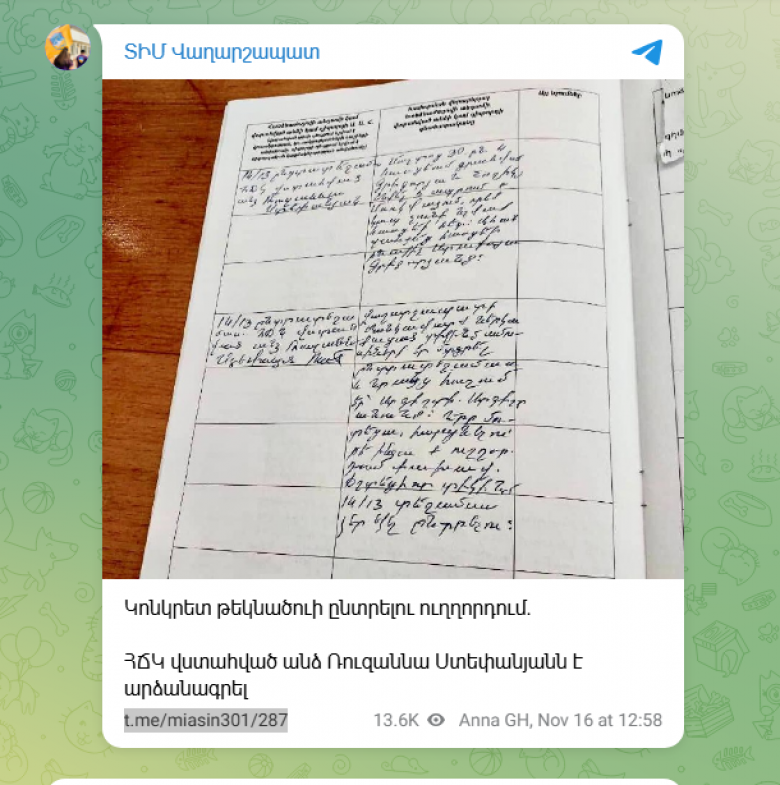 ՔԱՂԱՔԱԿԱՆՀՃԿ վստահված անձ Ռուզաննա Ստեփանյանն է արձանագրել