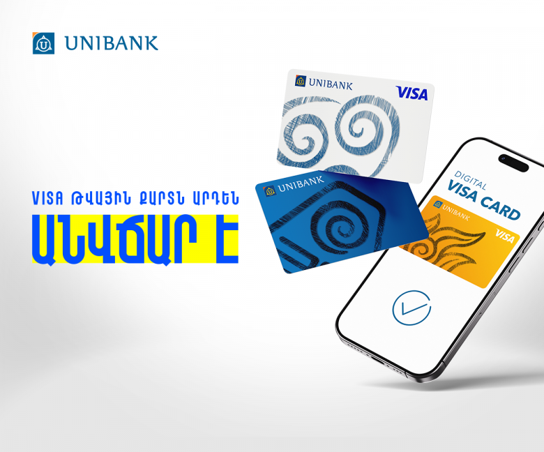 Յունիբանկի VISA DIGITAL քարտերը դարձել են անվճար