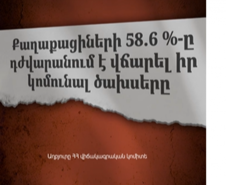 «Քաղաքացիների 58,6%-ը դժվարանում է վճարել կոմունալ ծախսերը: