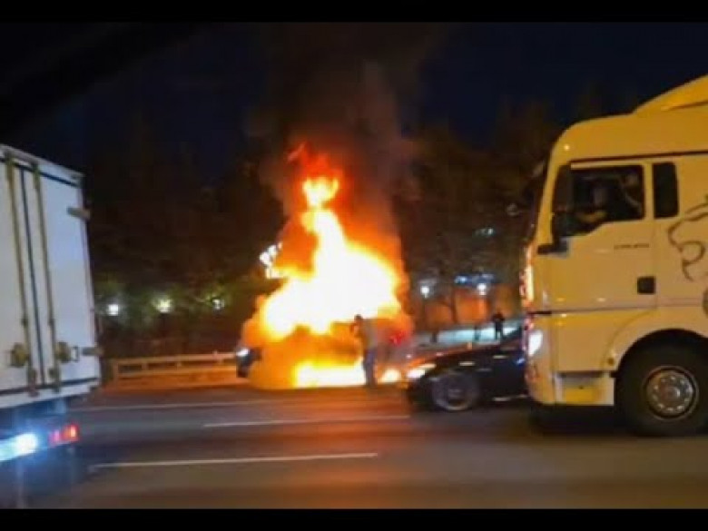 Կադրերում երևում է, թե ինչպես է մեքենան այրվում ճանապարհի երթևեկելի մասում՝ ամբողջությամբ այրվելով կրակի մեջ։ Կադրում ավելի ուշ դեպքի վայր են ժամանում արտակարգ իրավիճակների աշխատակիցները և արագորեն մարում կրակը։ Միջադեպի հետևանքով Mercedes-ը զգալի վնաս է կրել։