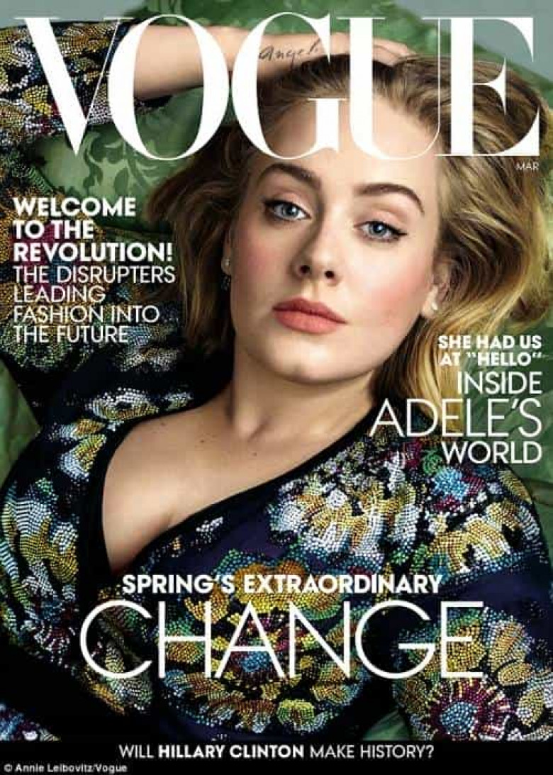 27-ամյա բրիտանացի երգչուհի Ադելը զարդարելու է Vogue ամսագրի մարտյան համարի շապիկը: Երգչուհուն լուսանկարել է ամերիկացի հանրահայտ լուսանկարիչ Էննի Լեյբովիզը: Ադելը ներկայացել է Burberry, Dior, Alexander McQueen եւ Gucci ապրանքանիշների հանդերձանքով ու Dior Fine Jewelry ականջօղներով: