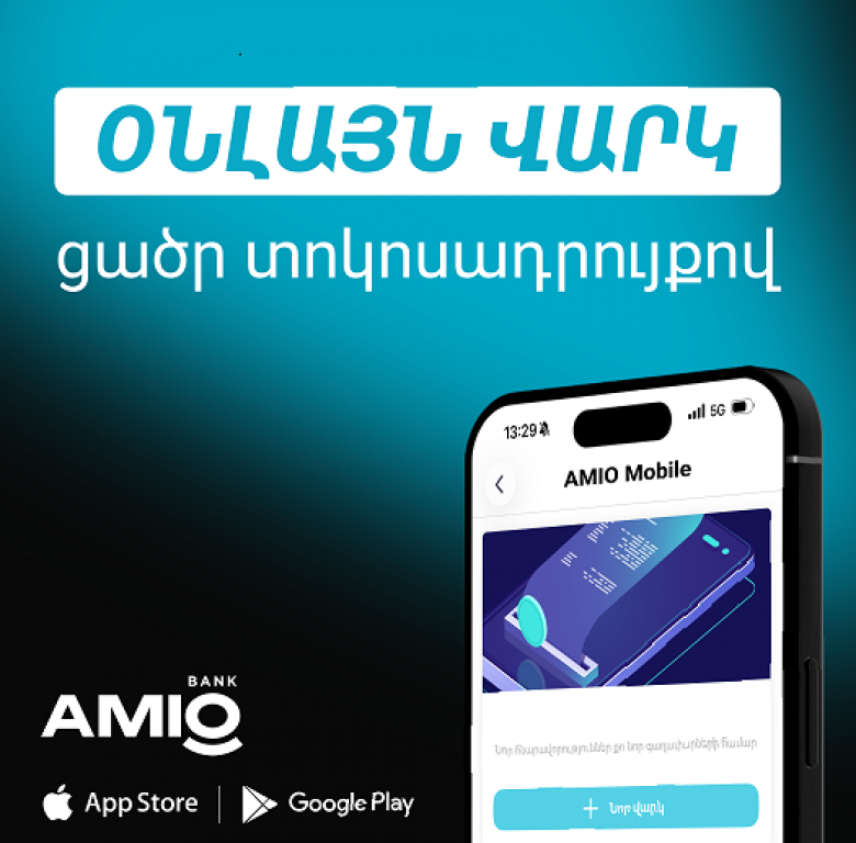 AMIO Mobile հավելվածի միջոցով այժմ կարող եք ստանալ օնլայն վարկ՝ առանց բանկ այցելելու։
