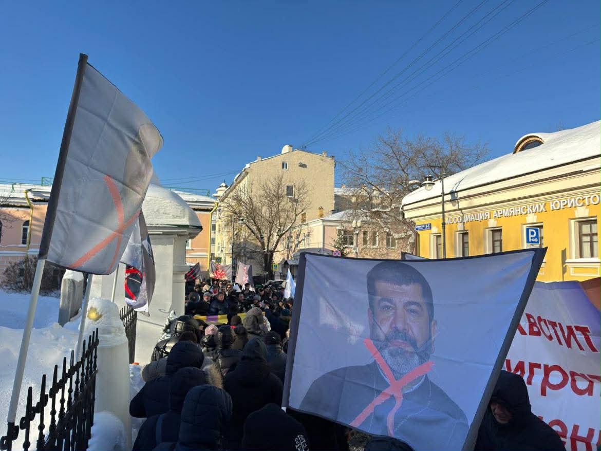ՔԱՂԱՔԱԿԱՆՓետրվարի 5-ին Մոսկվայում՝ Հայաստանի Հանրապետության դեսպանատան դիմաց, տեղի ունեցավ հերթական բողոքի ակցիան՝ ի պաշտպանություն Հայ Առաքելական Եկեղեցու։ Հարյուրավոր հայեր հավաքվել էին՝ իրենց աջակցությունը հայտնելու Հայոց Եկեղեցուն, Ամենայն Հայոց Կաթողիկոս Գարեգին Բ-ին, ձերբակալված հոգևորականներին, ազգային բարերար Սամվել Կարապետյանին և այն հայորդիներին, որոնք, ըստ մասնակիցների, ազատազրկվել են բացառապես իրենց արդար ձայնը բարձրացնելու համար։
