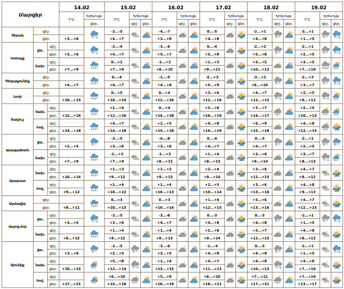 ԱՌԱՋԻԿԱ 5 ՕՐՎԱ ԵՂԱՆԱԿԻ ԿԱՆԽԱՏԵՍՈՒՄ (14.02-19.02.2026թ.)