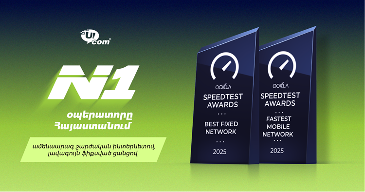ՀԱՍԱՐԱԿՈՒԹՅՈՒՆUcom-ը միաժամանակ հինգ մրցանակի է արժանացել Ookla® ընկերության կողմից շնորհվող Speedtest Awards հեղինակավոր մրցանակաբաշխության շրջանակում՝ այդ թվում «Հայաստանում ամենաարագ շարժական ինտերնետ» (Fastest Mobile Network), «Հայաստանում լավագույն ֆիքսված ցանց» (Best Fixed Network) և «Հայաստանում լավագույն շարժական ցանց» (Best Mobile Network) անվանակարգերում՝ 2025 թվականի երկրորդ կիսամյակի արդյունքներով։