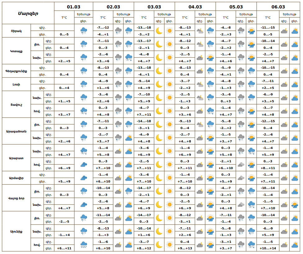 ԱՌԱՋԻԿԱ 5 ՕՐՎԱ ԵՂԱՆԱԿԻ ԿԱՆԽԱՏԵՍՈՒՄ (01.03-06.03.2026թ.)