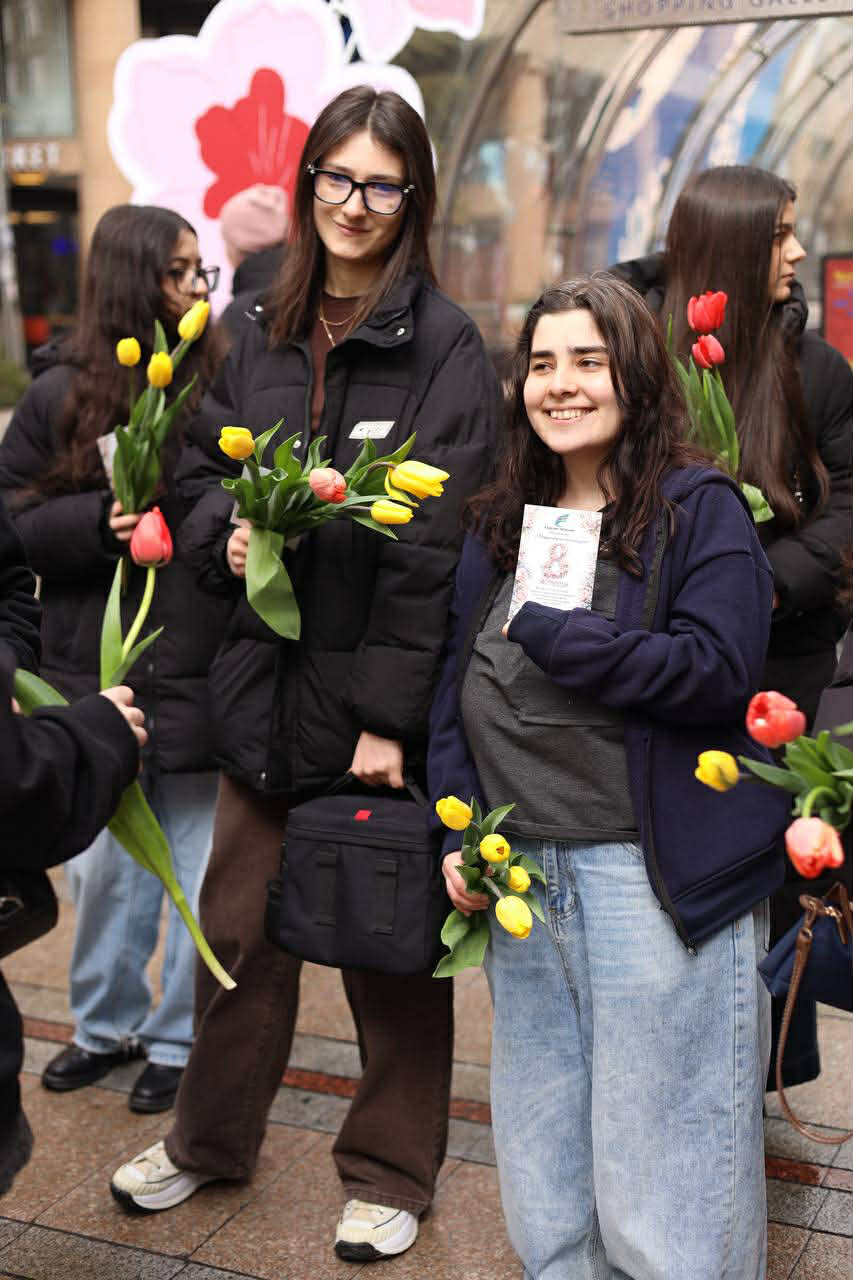 Կանանց և աղջիկներին հանձնվեցին ծաղիկներ և բացիկներ՝ ջերմ բարեմաղթանքներով։ Այս ուշադրության նշանը հիշեցրեց, որ տոնը ոչ միայն օրացույցի ամսաթիվ է, այլև հնարավորություն՝ կիսվելու ջերմությամբ ու հոգատարությամբ։ Շատերը սկզբում զարմանում էին, սակայն մի պահ անց նրանց դեմքերը լուսավորվում էին անկեղծ ժպիտներով։ Հենց այդ զգացմունքների համար էլ նախաձեռնությունը կյանքի կոչվեց։
