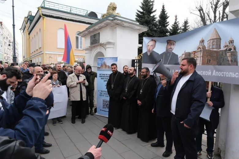 ՔԱՂԱՔԱԿԱՆԵրեկ Մոսկվայում՝ Հայաստանի դեսպանատան շենքի մոտ, տեղի է ունեցել «Մենք Էջմիածնի հետ ենք» ակցիան, որին մասնակցել են հայ համայնքի հարյուրավոր ներկայացուցիչներ։ Մարդիկ եկել էին ազգային դրոշներով ու պաստառներով, հնչում էին միասնության, համերաշխության և Հայ առաքելական եկեղեցուն սատարելու կարգախոսներ։ Մասնակիցները շեշտում էին, որ Հայ առաքելական եկեղեցին ավելի քան 1700 տարի շարունակում է մնալ հոգևոր հենասյուն և ազգային ինքնության խորհրդանիշ։ Ելույթներում հնչում էր այն միտքը, որ հենց Եկեղեցին է օգնել ժողովրդին հաղթահարել պատերազմները, փորձություններն ու ողբերգությունները, ներառյալ Ցեղասպանությունը, և այսօր կրկին հայտնվել է հանրային ուշադրության կենտրոնում։
