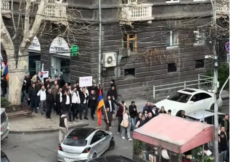 Սամվել Կարապետյանի աջակիցները Ուժեղ Հայաստան բացականչելով գնում են հանրահավաք