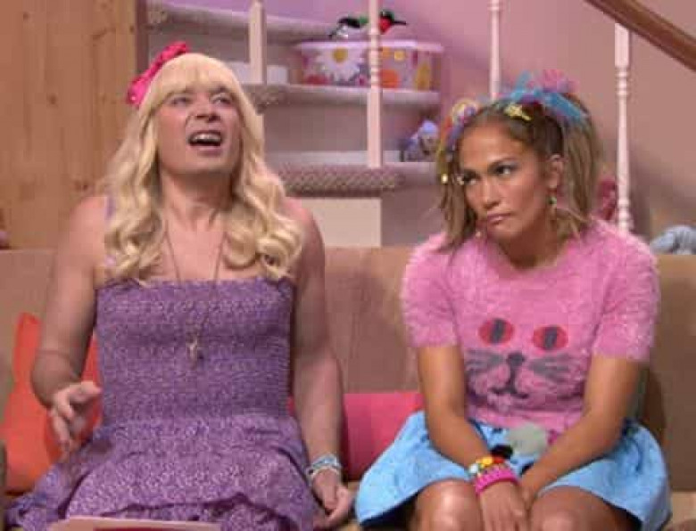 Այսօր Ջիմի Ֆելոնի հայտնի հեռուստաշոուի եթերում երգչուհի Ջենիֆեր Լոպեսը ցույց է տվել կերպարանափոխվելու իր տաղանդը: Լոպեսը և հաղորդավարը հագնվել են դեռահասների նման ու իրենց հենց այդպես էլ պահել՝ հայտնում է spletnik.ru-ն: