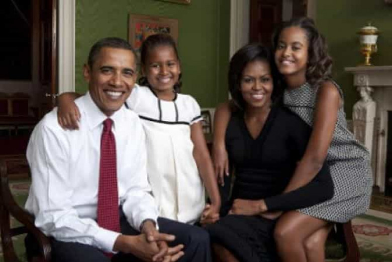 Բարաք եւ Միշել Օբամաներն ամուսնացել են 1992 թվականին: Նրանք երկու դուստրերն Էլ՝ 17-ամյա Մալիան եւ 14-ամյա Սաշան, սովորում են Վաշինգտոնի Sidwell Friends մասնավոր դպրոցում: