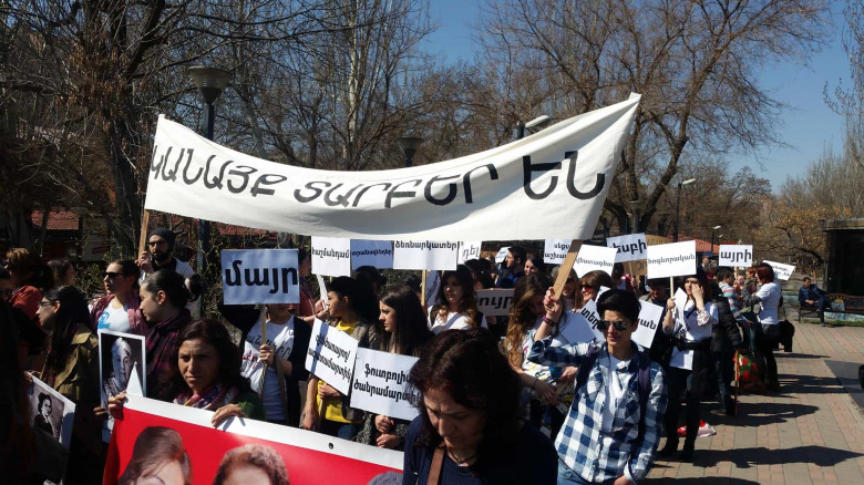 Ծաղիկների փոխարեն՝ պաստառներ. հայ ֆեմինիստներն այսօր երթ էին կազմակերպել (տեսանյութ)