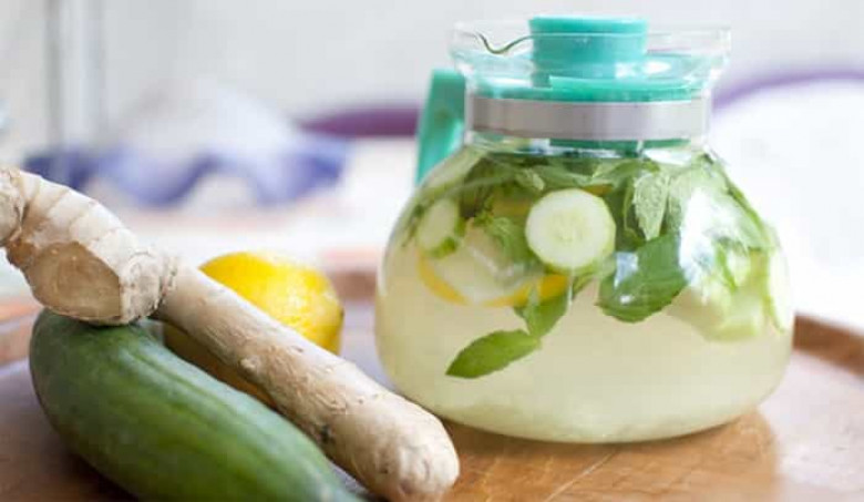 Առաջին հերթին պետք է ուղղակի քամեք կիտրոնը բաժակի մեջ, հետո բարակ շերտերի կտրատեք: Դրեք այն ջրով լի տարրայի մեջ: Այժմ բարակ շերտերով կտրատեք վարունգը, լցրեք ջրի մեջ: Ավելացրեք թարմ անանուխի մի քանի տերևներ: Մաքրեք կոճապղպեղի կեղևը և մանրացրեք: Ավելացրեք ջրի մեջ: Լավ խառնեք այդ ամենը: Եվ դրեք սառնարան գիշերվա ընթացքում: Խմեք այս ըմպելիքն առավոտյան՝ սովորական ջրի փոխարեն: Եվ նույնիսկ ցերեկները, օրվա ընթացքում, երբ կցանկանաք ջուր խմել: Ձեր կառուցվածքի մեջ նկատելի փոփոխություն կզգաք արդեն մեկ շաբաթից