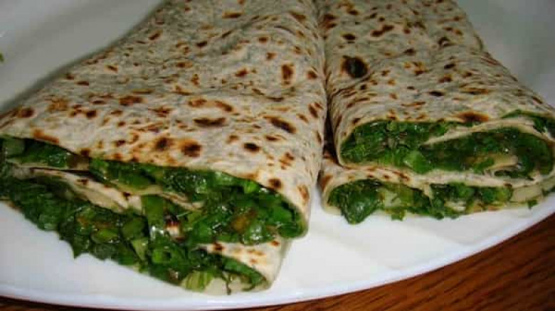 Պատրաստման եղանակը. խմորը բաժանել փոքր գնդիկների, մոտ 5 սմ տրամագծով: 5 րոպե անց բարակ գրտնակել (լավաշի պես): Կանաչու պատրաստ խառնուրդին ավելացնել աղ, պղպեղ, ձեթ (մեկ հացի համար առնվազն երկու ճաշի գթալ), խառնել և տեղադրել բարակ շերտով խմորի վրա այնպես, որ բոլոր ծայրերից 1 / 1.5 սմ-ը բաց մնա: Ծայրերն իրար միացնել ժենգյալով հացի մեջտեղի մասում, ամրացնել: Ձեռքի ափով արդեն փակած խմորին զգույշ թակելով, լայնությամբ և երկարությամբ մեծացնել և դնել արդեն միջին կրակով տաքացած սաջի (կլոր կամ քառակուսի երկաթ է) կամ երկաթե վառարանի վրա: