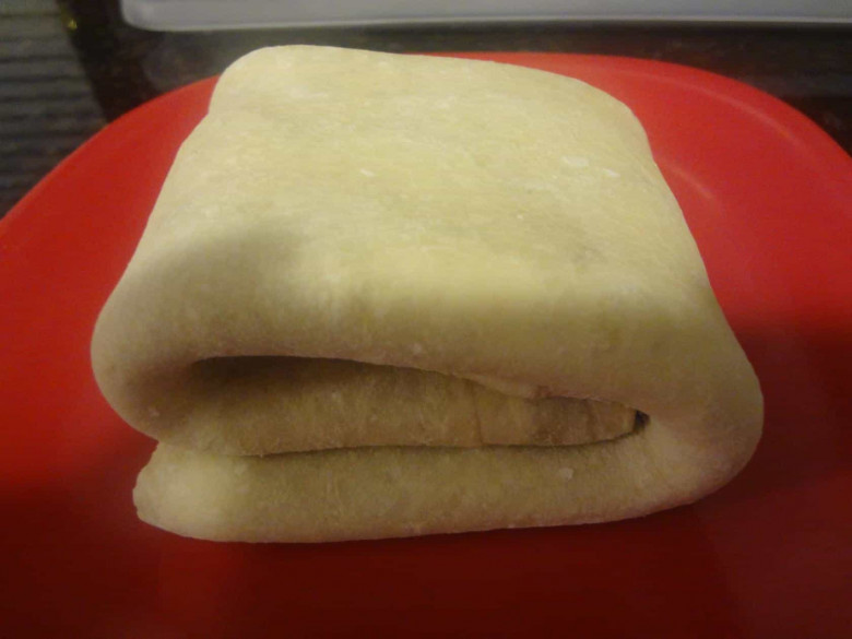 Խմորի պատրաստման համար ալյուրը, աղը, լիմոնի աղը միասին լավ խառնել, ավելացնել ձուն և գոլ ջուրը։ Զանգվածը լավ խառնել, որպեսզի ստացվի միասեռ։ Խմորից պատրաստել 10 հատ գունդ։ Միջուկի պատրաստման համար ալյուրը և փափկեցրած մարգարինը միասին լավ խառնել, բաժանել 10 մասի։ Խմորի գնդերը տափակացնել, մեջը դնել միջուկը, փակել այնպես, որ ստանա կարկանդակի տեսք, միևնույն ժամանակ միջուկը խմորից դուրս չգա։ Ինչպես նաև շարելուց շարել այնպես, որ խմորի միացման մասը մնա տակը։ Թողնել 30 րոպե, որպեսզի խմորը հանգստանա։ Այնուհետև խմորները գրտնակով բացել, ծալել և դնել սառնարանում։ Նույն գործողությունը կատարել 3 անգամ (գրտնակել, ծալել, փակել և դնել սառնարան), ամեն անգամ սառնարանում թողնելով 45-60 րոպե։