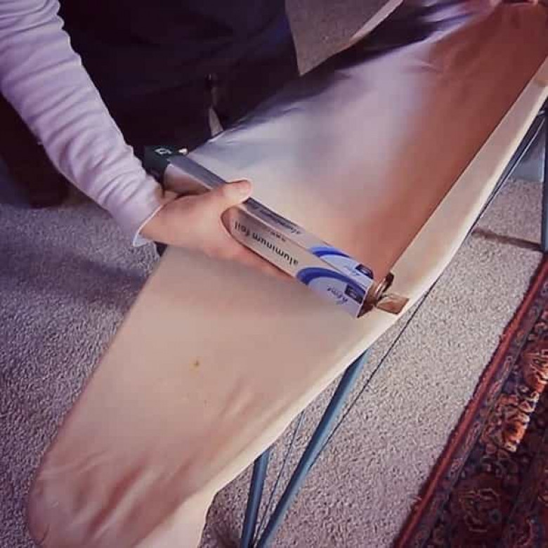 Փայլթաիթեղ դրեք արդուկի սեղանի վրա, ապա արդուկեք հագուստը. արդյունքն եռակի արագ կլինի