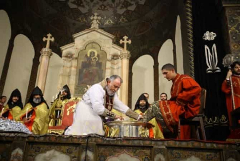 Ապա Ամենայն Հայոց Կաթողիկոսն օրհնել է խորանի վրա դրված ջուրն ու յուղը, որից հետո Նորին Սրբությունը, Աստվածորդու օրինակով ծունկի գալով, հոգեպարար շարականների երգեցողության ներքո լվացել ու յուղով օծել է տասներկու անձանց ոտքերը: