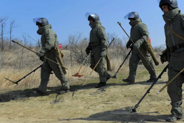 Մարտի 28-ին Ռուսաստանի զինուժերի Գլխավոր շտաբի ղեկավար Վալերի Գերասիմովը հայտնել Է, որ Ռուսաստանից արագ կերպով Սիրիա են փոխադրվում սակրավորներ՝ ռոբոտներով եւ վարժեցված շներով: Նա հրավիրել Է նաեւ մյուս երկրներին՝ միանալու Պալմիրայի ականազերծմանը: