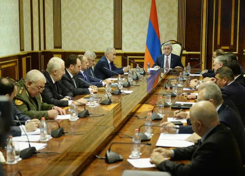 Բացի Զինված ուժերից իրենց գործը կատարում են մեր մյուս գերատեսչությունները. կապ է հաստատվել միջազգային կառույցների մեր գործընկերների հետ: Այնուհանդերձ, ինչպես բազմաթիվ անգամ ասել եմ, մեր խնդիրները մենք պետք է լուծենք և բնավ չթերագնահատվելով որևէ մեկի օգնությունը: Հիմա Պաշտպանության նախարարը և Գլխավոր շտաբի պետը հարցը կզեկուցեն ռազմական տեսանկյունից, Արտաքին գործերի նախարարի տեղակալը՝ դիվանագիտական ջանքերի մասին, այնուհետև կընդունենք համապատասխան որոշումներ»,- ասել է Նախագահ Սերժ Սարգսյանը: