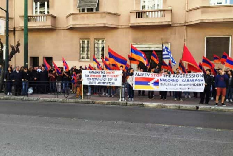 Աթենքում Ադրբեջանի դեսպանության դիմաց բողոքի ցույց է կազմակերպվել