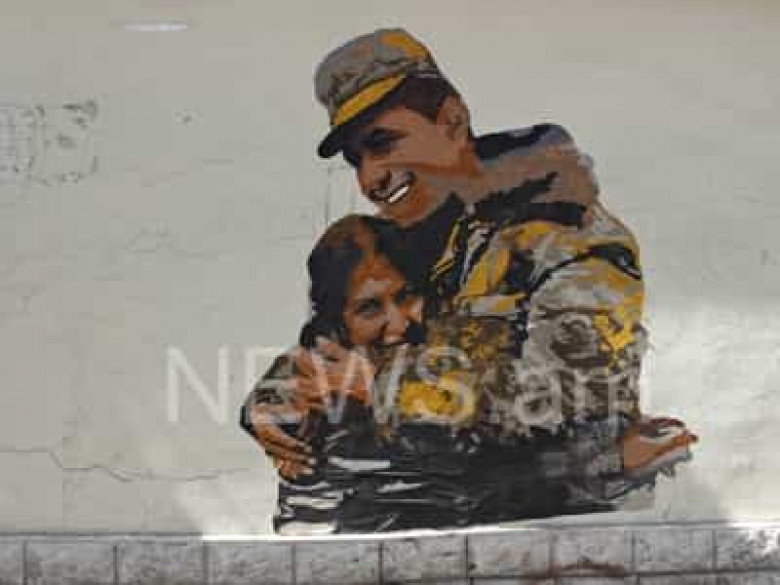 Ստրիթ-արտ այս նկարում պատկերված է մորը գրկած զինվոր, իսկ նկարից ոչ հեռու իրական ծաղիկներ են: Նկարը հուզել է շատ երեւանցիների: