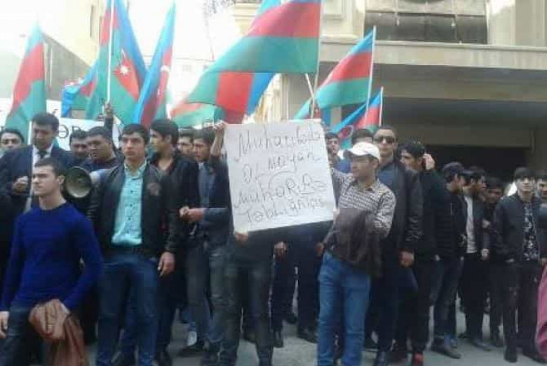 Նրանք «Մի շահագործիր շեհիդների արյունը», «Անեծք քեզ», «Քեզ կարմիր քարտ», «Դուրս արի քո երեւակայական աշխարհից» լոզունգներ են հնչեցրել եւ Ալի Քերիմլիին մեղադրել հայամետ լինելու մեջ: