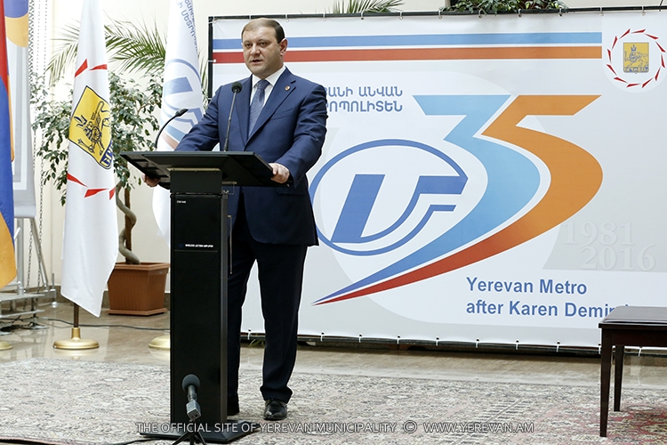 Երևանի մետրոպոլիտենի 35-ամյակի առիթով պաշտոնական ընդունելության շրջանակում երկարամյա արդյունավետ և բարեխիղճ գործունեության համար մետրոպոլիտենի մի շարք վաստակաշատ աշխատակիցներ արժանացել են պարգևների: