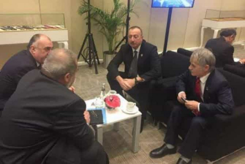 Լուսանկարում երեւում է, որ Իլհամ Ալիեւը Էլմար Մամեդյարովի հետ զրուցում են Մուստաֆա Ջեմիլեւի եւ Ռեֆաթ Չուբարովի հետ: