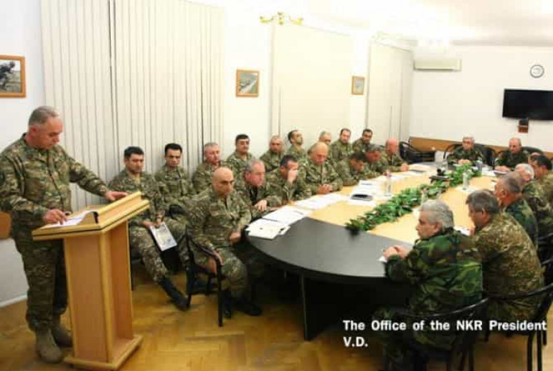 ՀՀ և ԼՂՀ նախագահները պաշտպանության բանակի բարձրագույն սպայական կազմի հետ քննարկել են բանակաշինության հարցեր