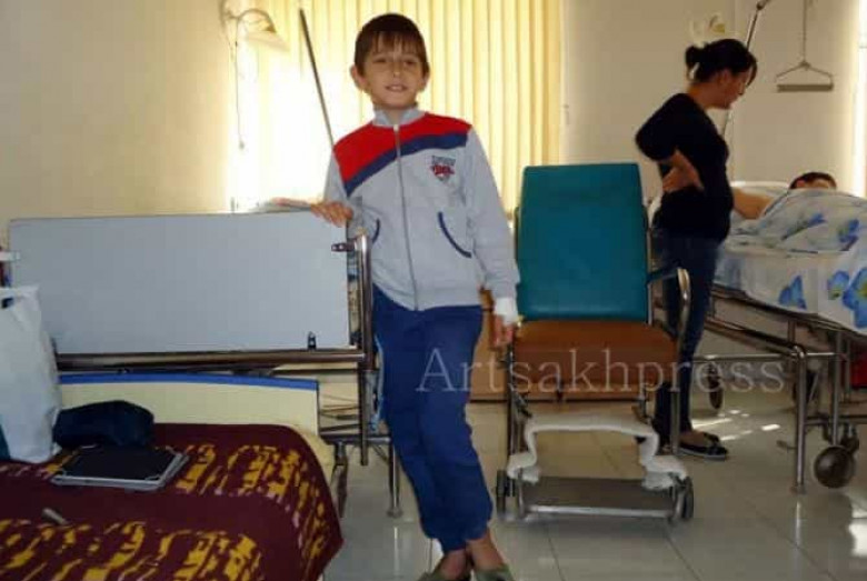 ՀԱՍԱՐԱԿՈՒԹՅՈՒՆՀակառակորդի կողմից ապրիլի 2-ին Մարտունու շրջանի Ներքի Ճարտար բանակավայրի հրթիռահրետակոծության հետևանքով վիրավորված 11-ամյա Գևորգ Գրիգորյանը, ով երկար ժամանակ ինտենսիվ բուժում էր ստանում Ստեփանակերտի «Արևիկ» մանկական հիվանդանոցում, արդեն սկսել է քայլել հենակների օգնությամբ։