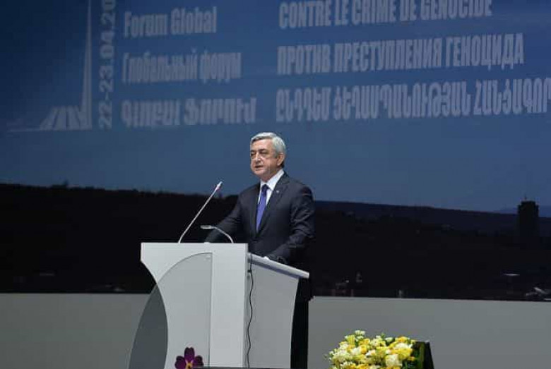 Նախագահ Սարգսյանը հավելեց, որ մեկ տարի առաջ Ցեղասպոնւթյան 100-րդ տարելիցի նախօրեին պատիվ է ունեցել ազդարարելու հասարական-քաղաքական այս ֆորումի աշխատանքների մեկնարկը՝ հավատալով դրա առաքելությանն ու հաջողությանը: «Իսկ այդ առաքելությունն էր վեր հանել ցեղասպանությունների կանխարգելման հիմնական խնդիրները, մշակել դրանց լուծման ուղիները, համախմբել մարդկության ներուժը, 21-րդ դարում մարդկության դեմ հանցագործությունների նկատմամբ հաղթանակ տանելու նպատակով: Ես կարող եմ ասել, որ այն հաջողվեց: Այն հաջողություն գտավ ոչ միայն մասնագետների, այլ հազարավոր մարդկանց շրջանակներում ոչ միայն Հայաստանում, այլ դրանից դուրս: Այն առիթ դարձավ, որ մարդկությունը խոսի մեծագույն չարիքի մասին: Դրանով էր պայմանավորված այս որոշումը՝ Երևանը հարթակ դարձնել այն մարդկանց համար, ովքեր վճռական են իրենց լուման բերելու համակարդկային այս պայքարին»,- նշեց Սարգսյանը: